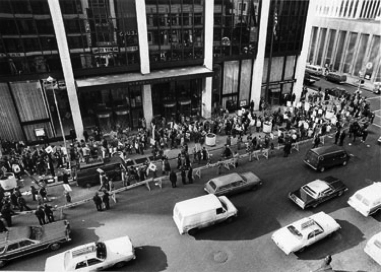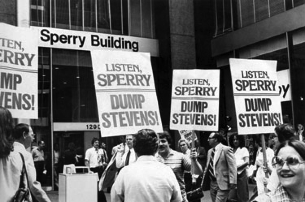 In one demonstration I organized in July 1980, Crystal led a march of about seven hundred demonstrators into Sperry's annual meeting because the CEO of Stevens served on the company's board along with the head of Metropolitan Life Insurance Company. As reported in the Wall Street Journal in October 1980, pressure by the head of Metropolitan Life on Stevens was the final blow following forced board resignations of the CEOs of J.P. Stevens, New York Life Insurance and Avon Products from the boards of Manufacturers Hanover Bank, New York Life Insurance and J.P. Stevens.