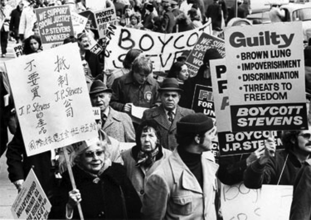 The Textile Workers Union had merged in 1976 with the larger Amalgamated Clothing Workers of America to form ACTWU. The new union's leaders and AFL-CIO President George Meany immediately announced "an international consumer boycott" of Stevens' products to pressure the company to settle with the union.